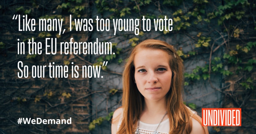 Example: Undivided aims to crowdsource a million votes from people under 30 to ensure young people help to shape post-Brexit Britain, regardless of how they voted in the referendum.